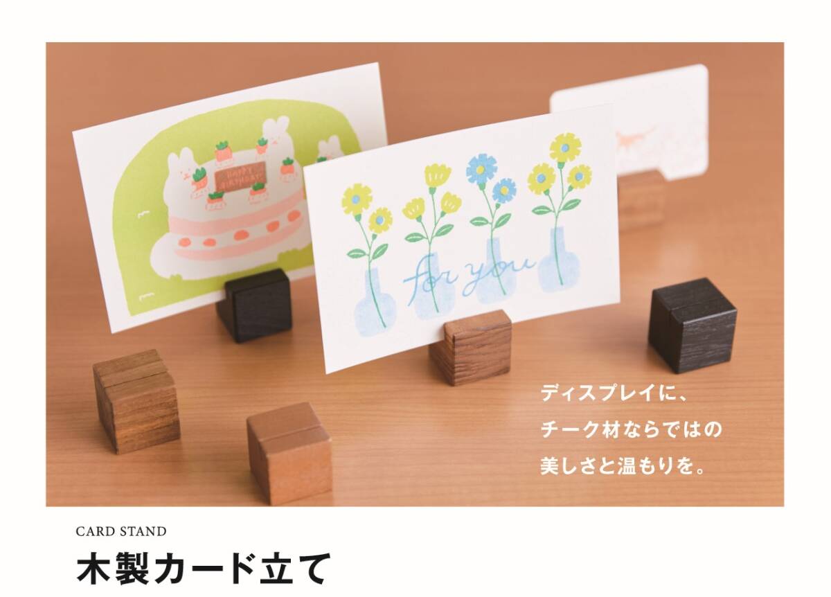 > ★高級品本物志向★チーク無垢材使用★木製カード立て3個セット★カラー:チークレッド(自然塗装仕上)★サイズ:30mm角★SHOP等へ