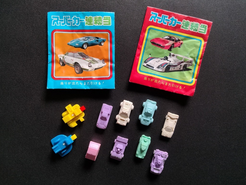 > '70s 当時物 スーパーカー消しゴム 発射台付き 8台セット !! ☆ カウンタック ミウラ ストラトス フェアレデイZ マイクロカー 珍車 旧車 ②