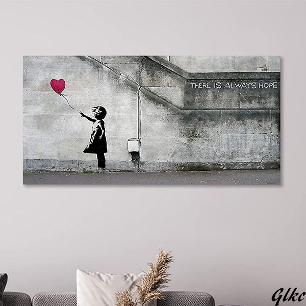 > 【部屋全体にアート性とメッセージ性が加わる】 アートパネル 50×100cm 壁掛けインテリア バンクシー 赤い風船 完成品