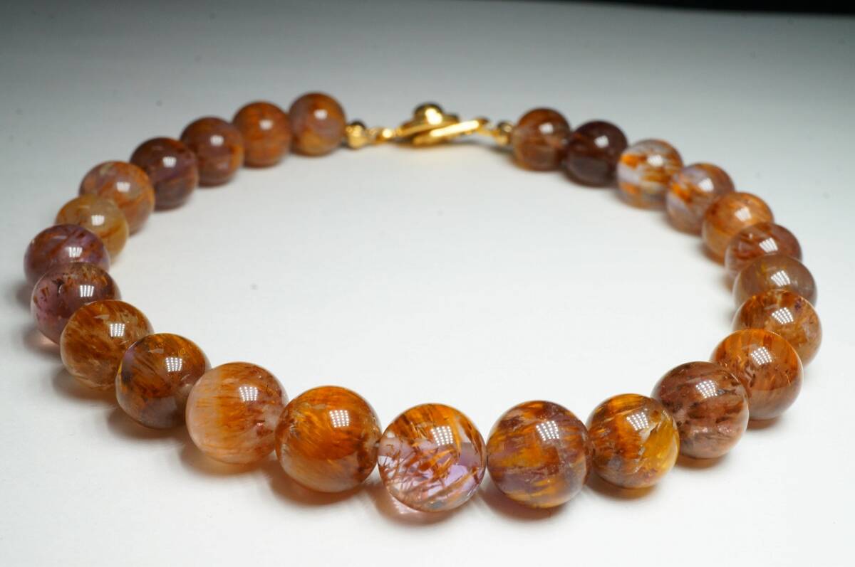 > 【即決限定価格!早い者勝ち】30年前の未使用在庫玉!カコクセナイト&ゲーサイト他 in アメジスト/amethyst /水晶 紫水晶ブレスレット21g