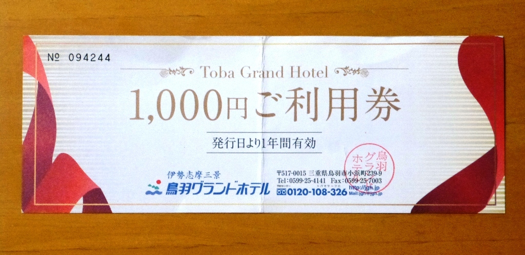 - 鳥羽グランドホテル 1,000円ご利用券 有効期限:令和8年1月16日