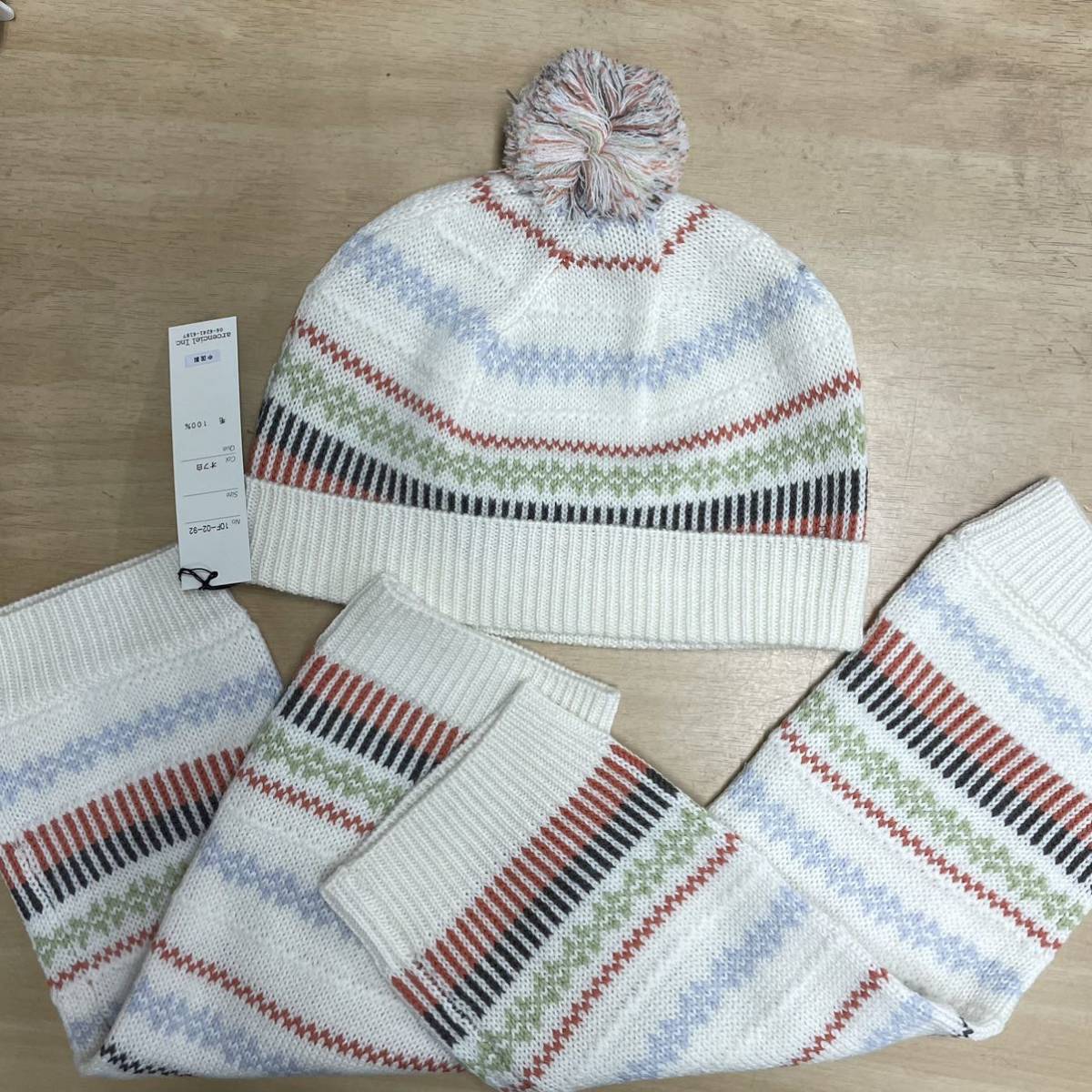 - ウール100%ニット帽とレッグウォーマーのセット白