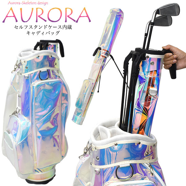 - ゴルフ キャディバッグ オーロラカラー セルフスタンドゴルクラブケース内蔵 女性 レディース キャディーバッグ おしゃれ ゴルフ用品