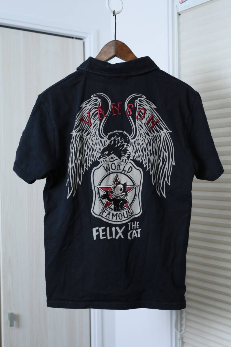 VANSON×フェリックス・ザ・キャット バンソン コラボ プリント刺繍ワッペン半袖ポロシャツ