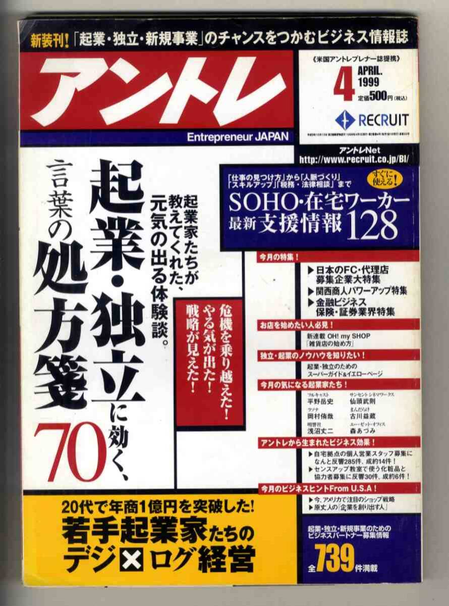 書名/記事: 99.4 アントレ/起業・独立に効く 言葉の処方箋70、若手起業家たちのデジ×ログ経営、、...