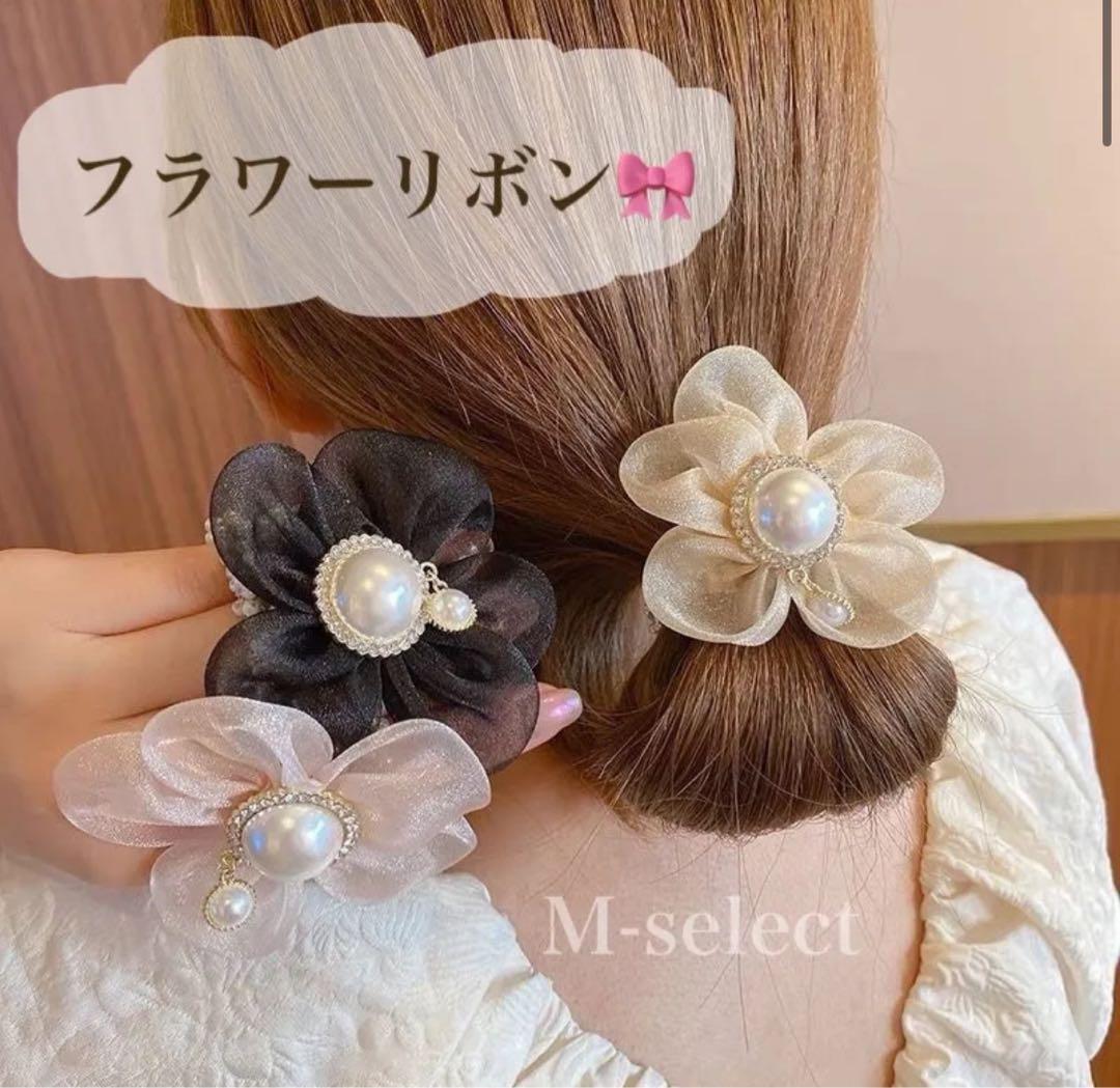 - 【訳あり】ヘアゴム フラワー パールヘアアクセ 韓国風 髪留め 髪飾り パール