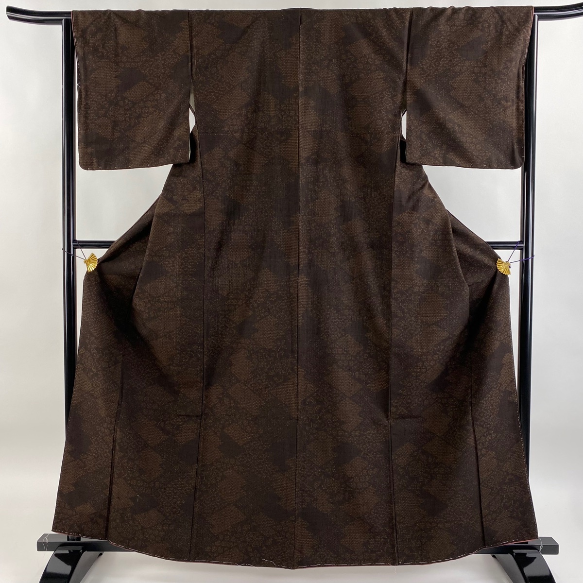 - 紬 身丈162.5cm 裄丈65cm M 袷 松川菱 亀甲絣 焦茶色 正絹 美品 秀品 【中古】