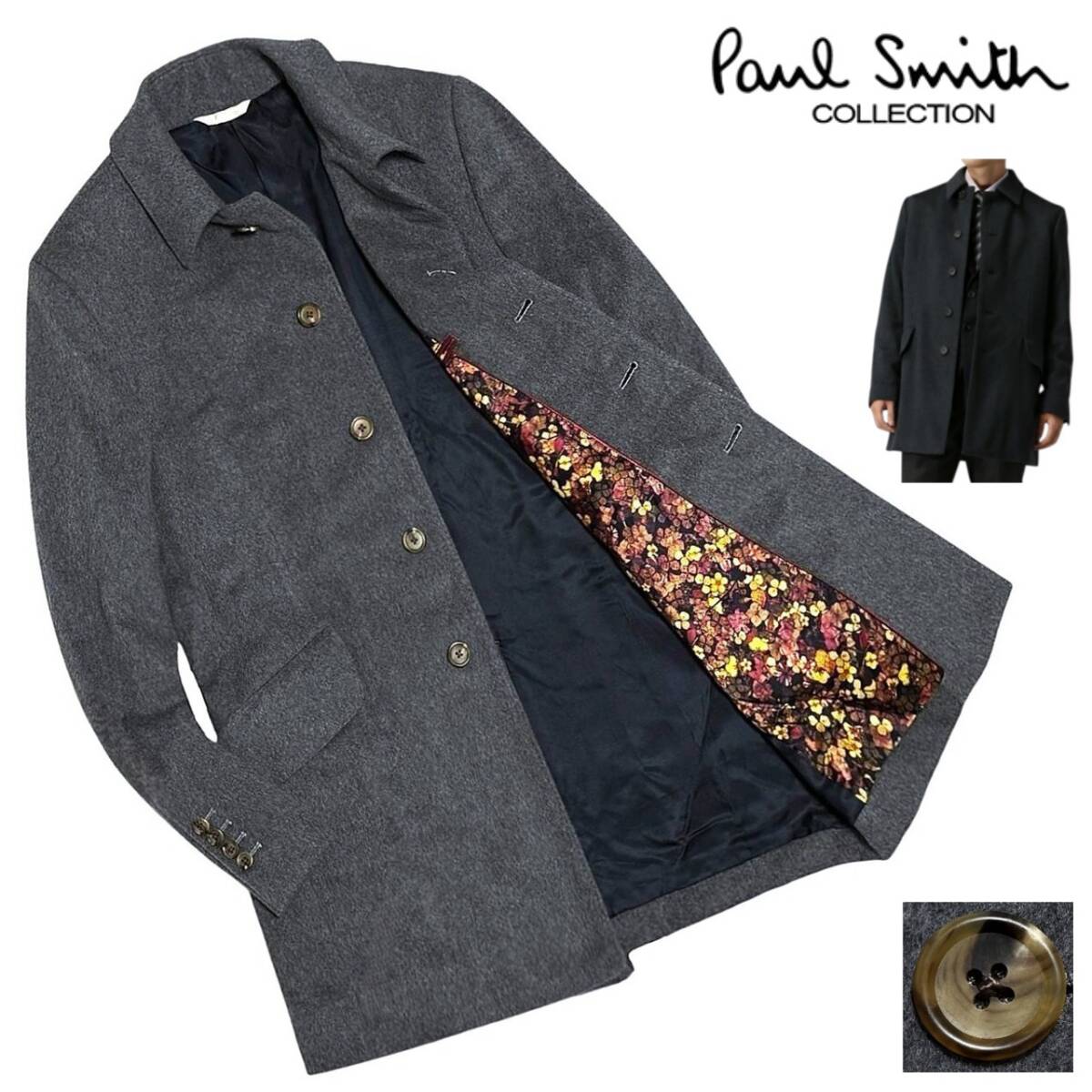 > 希少! 極美品 定価11万 日本製! ポールスミス 総裏 フラワー 花柄 最高級 カシミヤ x ミンク ステンカラーコート L Paul Smith COLLECTION