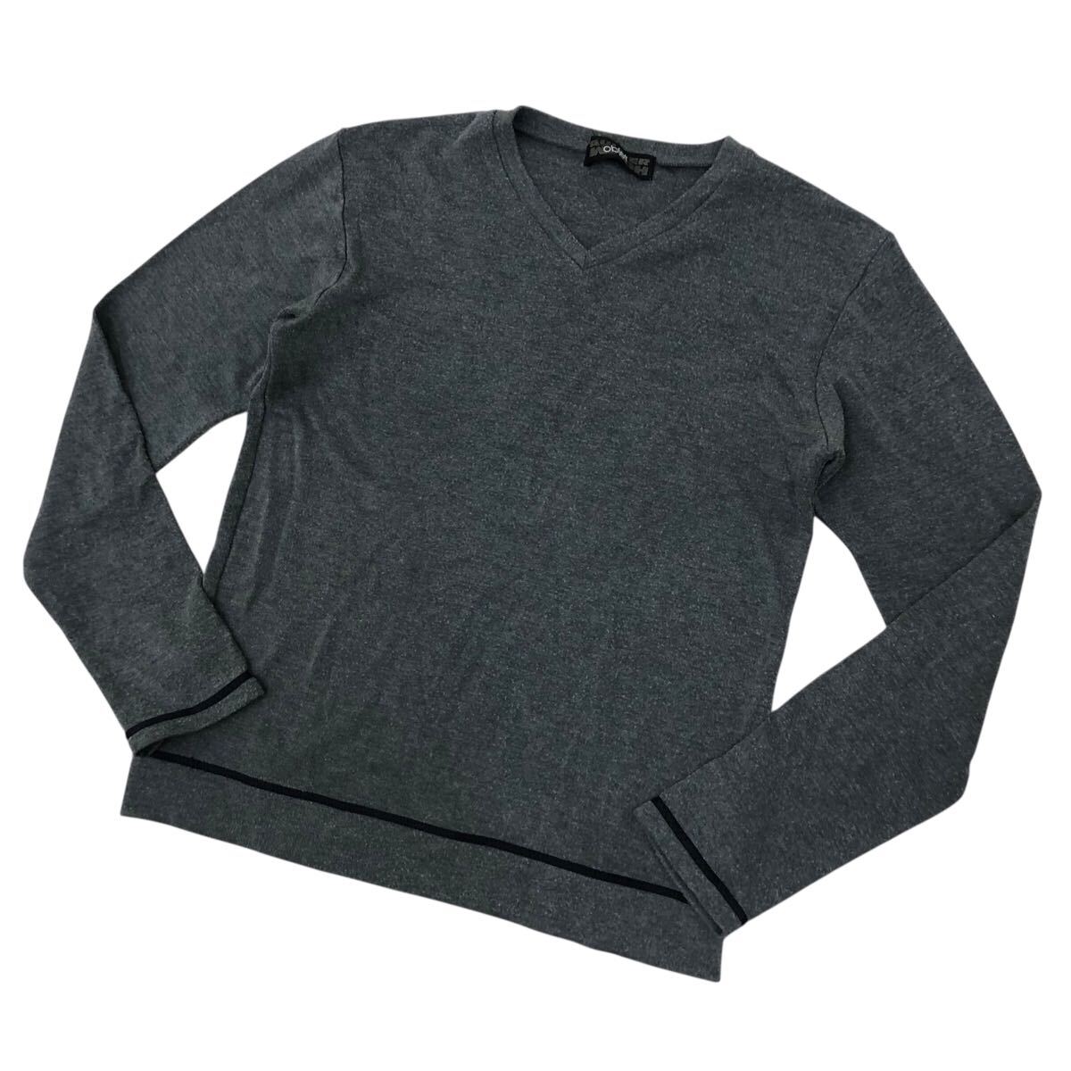 - 8K329-19 GAULTIER HOMME objet ゴルチエ オム オブジェ 長袖 スウェット ライン Tシャツ トップス Vネック グレー メンズ 紳士 実寸参考