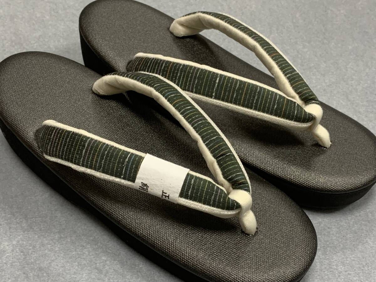 - 新作カフェ草履 低反発素材+ウレタンの台 正絹の心地良い鼻緒の調節ができます。Mサイズ(紬風)