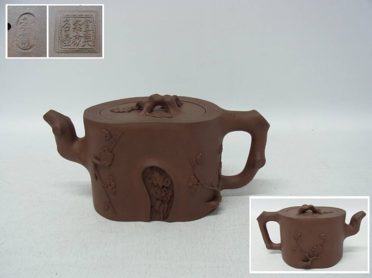 > ☆宜興紫砂各壺 栄郷 印 梅幹壺 茶壺 宜興紫砂 宜興紫砂名壺 朱泥 急須 茶道具 中国 中国美術 現状 60