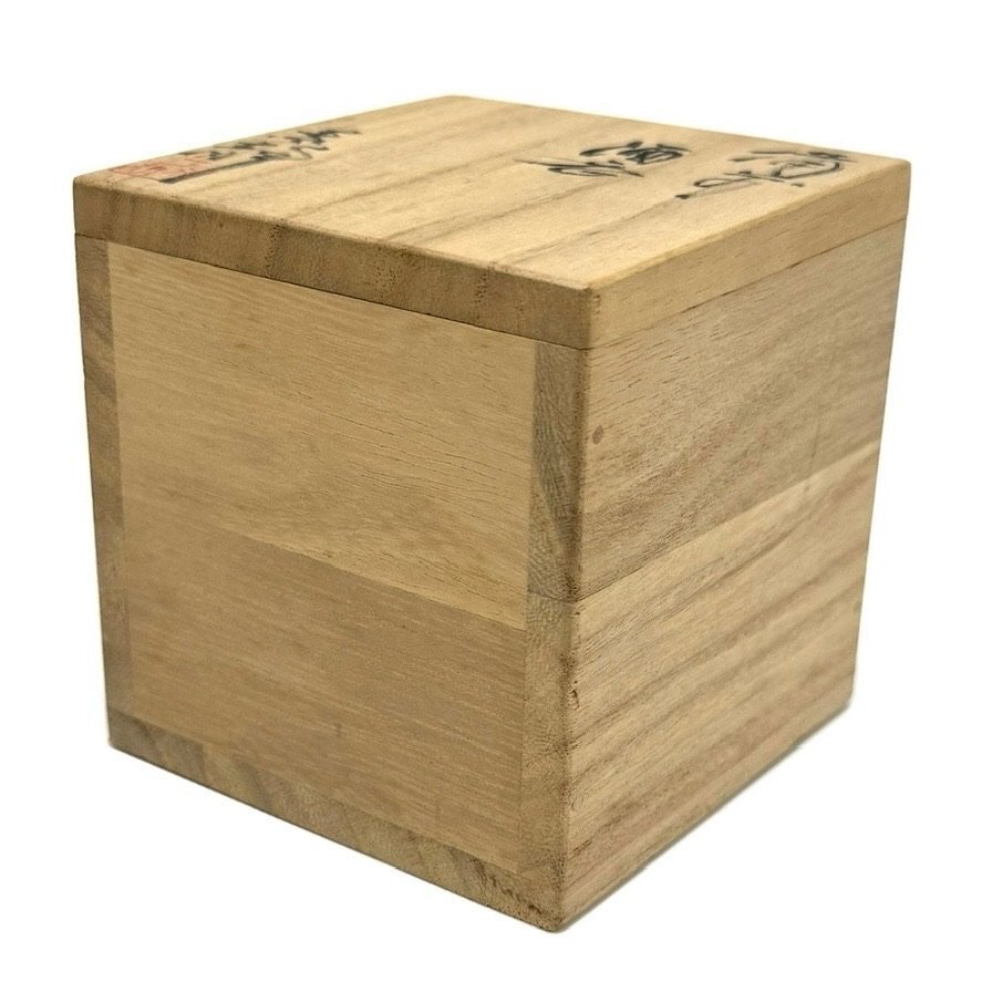 - 空箱 木箱 中古 備前 酒呑 共箱 骨董品 ヴィンテージ レトロ インテリア 書道文字 筆文字 8.5cmx8.5cmx8.5cm 箱のみ