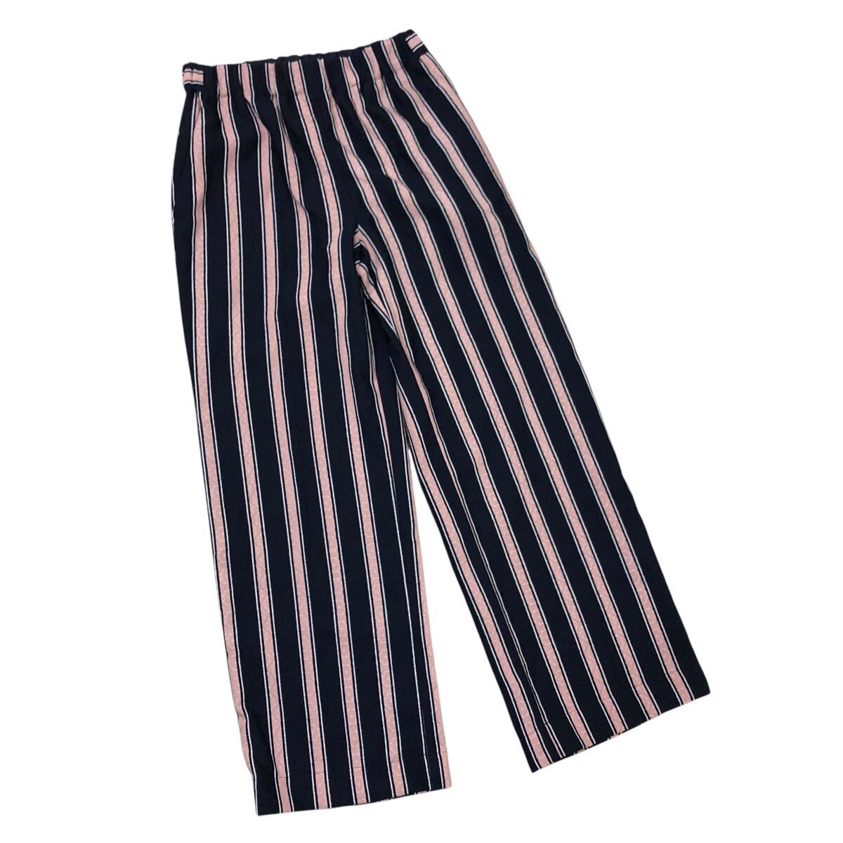 > 8Nm317-42 nano &co ナノ アンドコー ストライプ 柄 ロングパンツ イージーパンツ パンツ ズボン ボトムス ネイビー系 レディース F