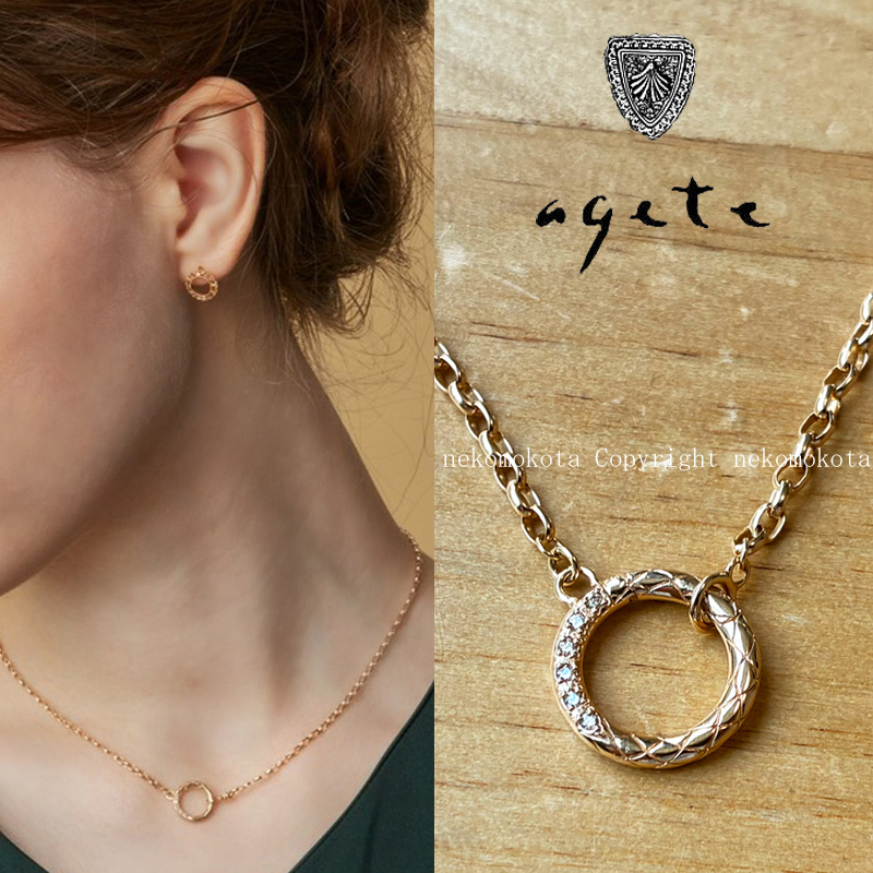 - 未使用に近い 美品 アガット K10 ダイヤモンド サークル ネックレス ゴールド agete 定価10万