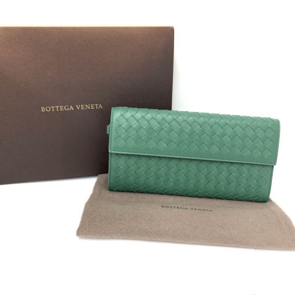 > D0827 新品未使用!格安! BOTTEGAVENETA ボッテガヴェネタ イントレチャート 二つ折り 長財布 レザー グリーン
