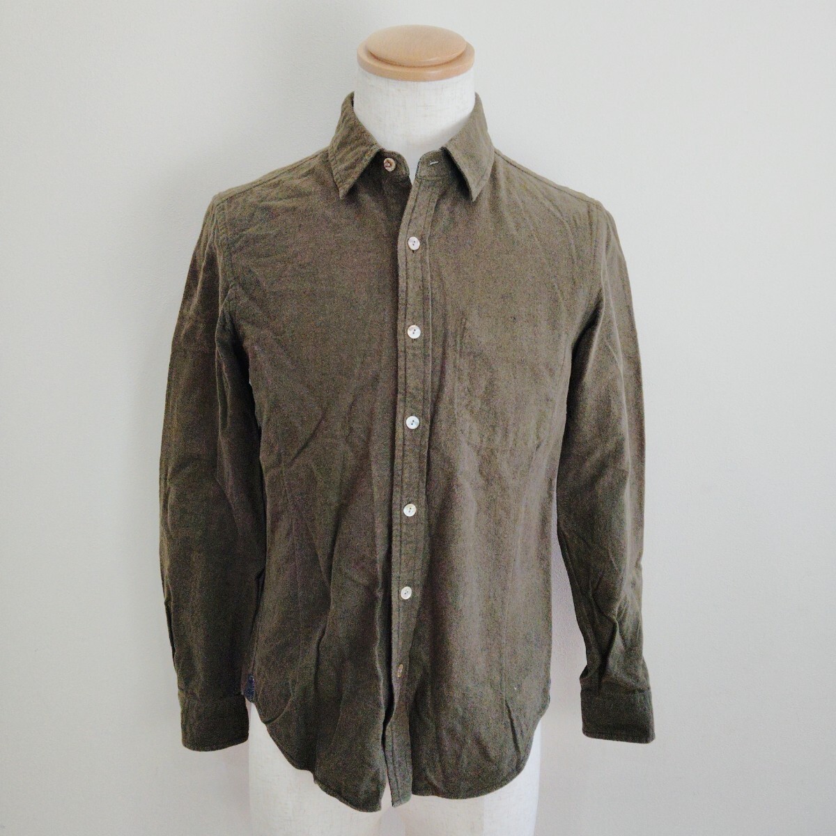 - 0822/S/KATHARINEHAMNETTLONDON メンズ 長袖シャツ ブラウス ネルシャツ 無地 内ポケット カーキ