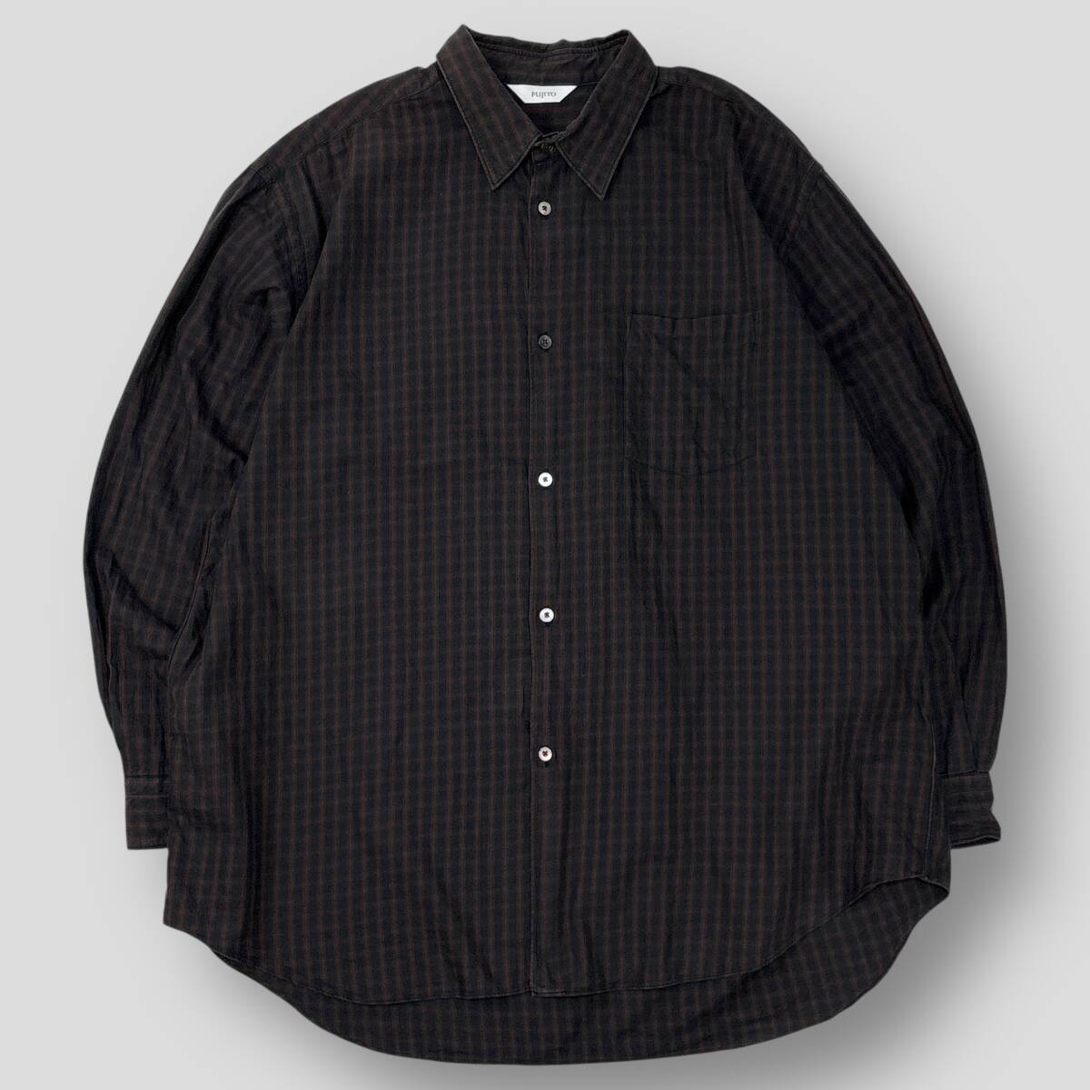 > 美品 FUJITO フジト 21AW B/S Shirt - Navy Check ビッグシルエットシャツ 3 長袖 ネイビーチェック オーバーサイズ メンズ SSM5742
