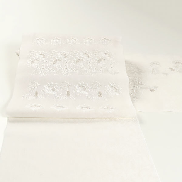 - 和遊館 即決ona4489 西陣 大光 地紋 刺繍 九寸 名古屋帯 オールシーズン オフホワイト お仕立て付き