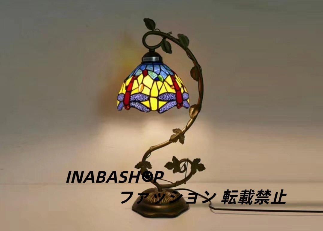 > ティファニーテーブルランプ バンカーステンドグラス ベッドサイドランプ ブルー イエロートンボカントリースタイル デスクライト