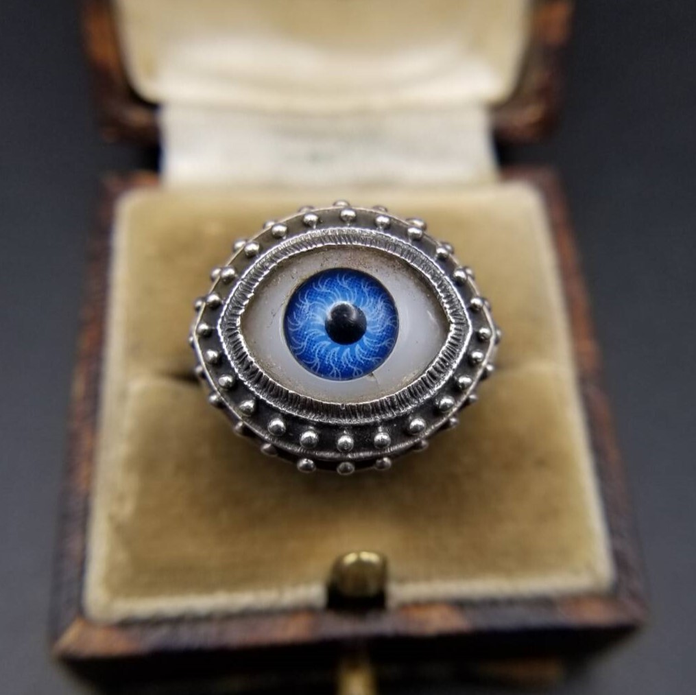 > 悪魔の目 ドットリム 925 シルバー ヴィンテージ 目玉 リング銀 指輪 青い瞳 個性派ジュエリー 存在感 ユニセックス Y24-G