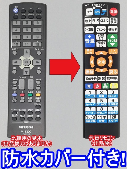- 【代替リモコン47】防水カバー付 三菱 RU-DM108 互換 送料無料 (MDT221WTF用) MITSUBISHI VISEO