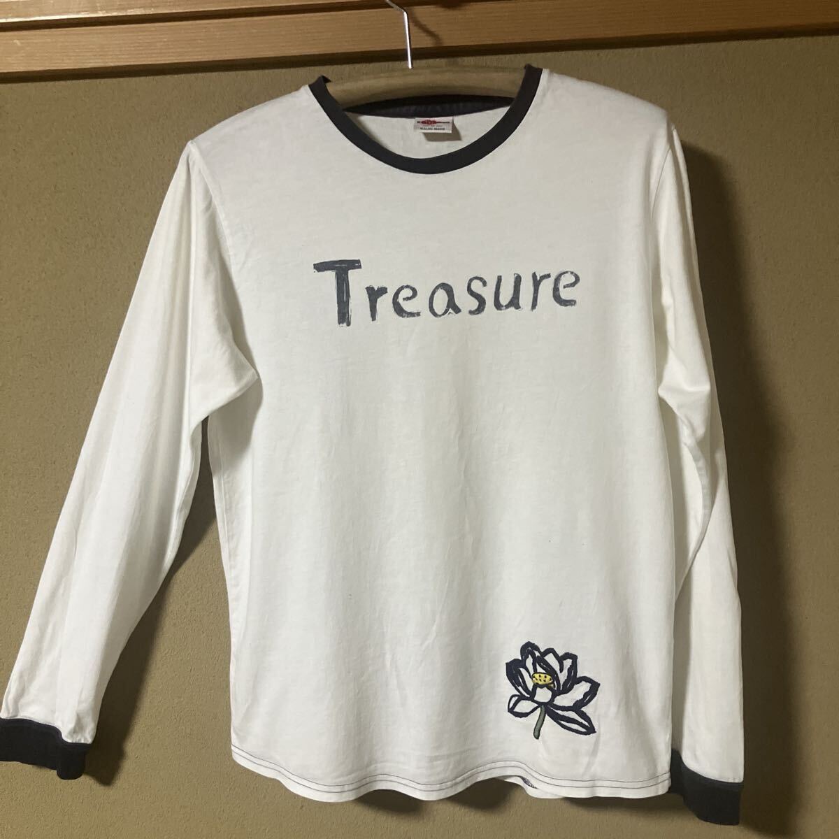 > ガイジンメイド、リンガータイプ[TREASURE]手書き+刺繍長袖T-シャツ ホワイト/Mサイズ