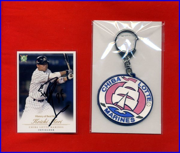 - ◆千葉ロッテマリーンズ◆貴重な帆船マークキーホルダー&堀幸一直筆サインカード◆
