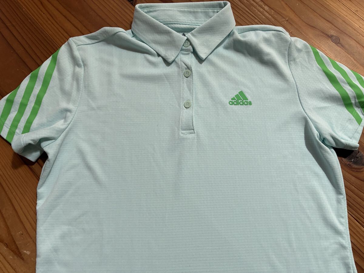 > 送料込み!! adidas 半袖ポロシャツ 水色 Mサイズ アディダス GOLF ゴルフウェアー 三本ライン HEAT RDY ポロシャツ