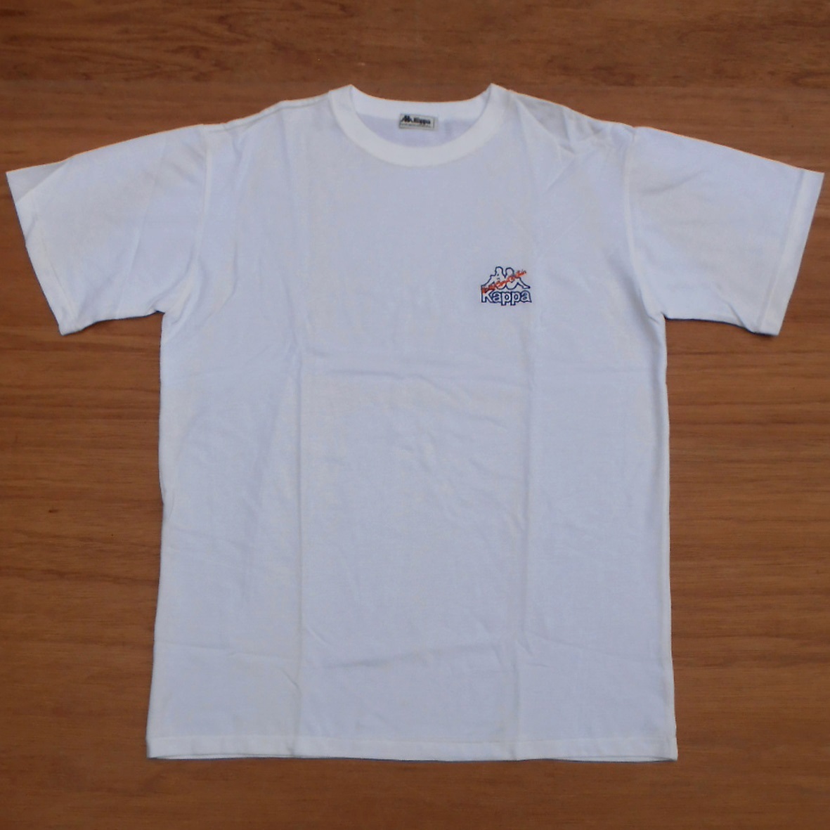 - 未使用 '90s Kappa カッパ 半袖 Tシャツ 白x青xオレンジ ロゴ刺繍 ホワイト ブルー 訳あり 汚れ デッドストック ヴィンテージ フェニックス