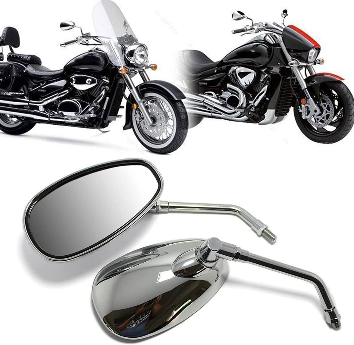 - バイクミラー オートバイミラー 左右セット 10mm 正ネジ メッキ シルバー色 調節可能 カワサキ ホンダ 汎用