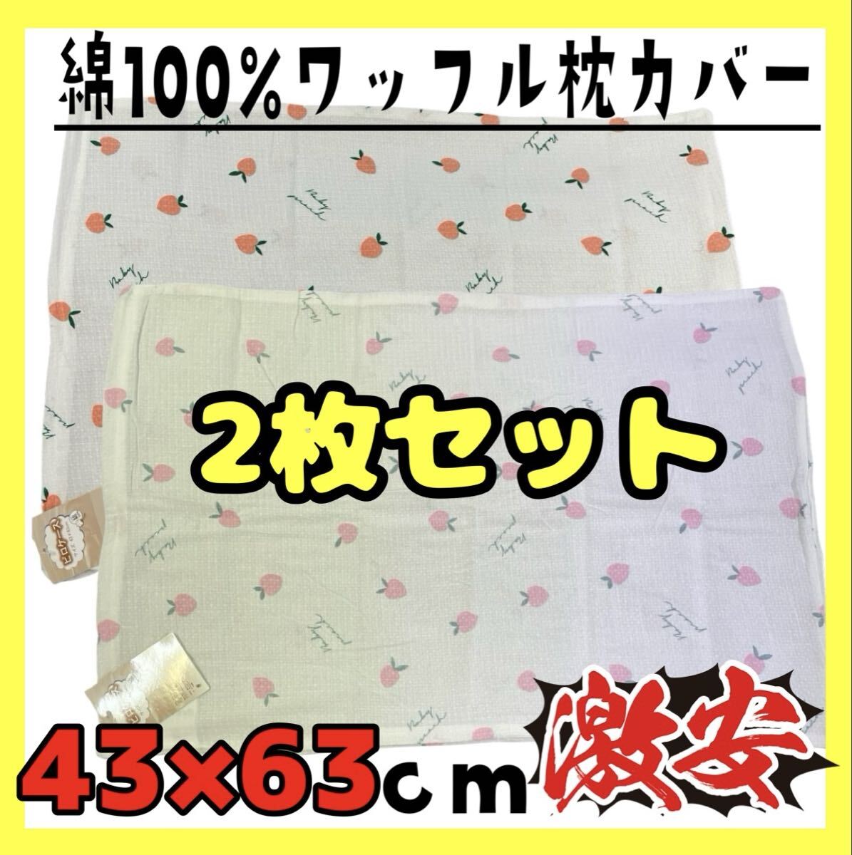 - 2枚セット☆激安☆綿100%☆ワッフル枕カバー☆43×63cm☆ファスナータイプ