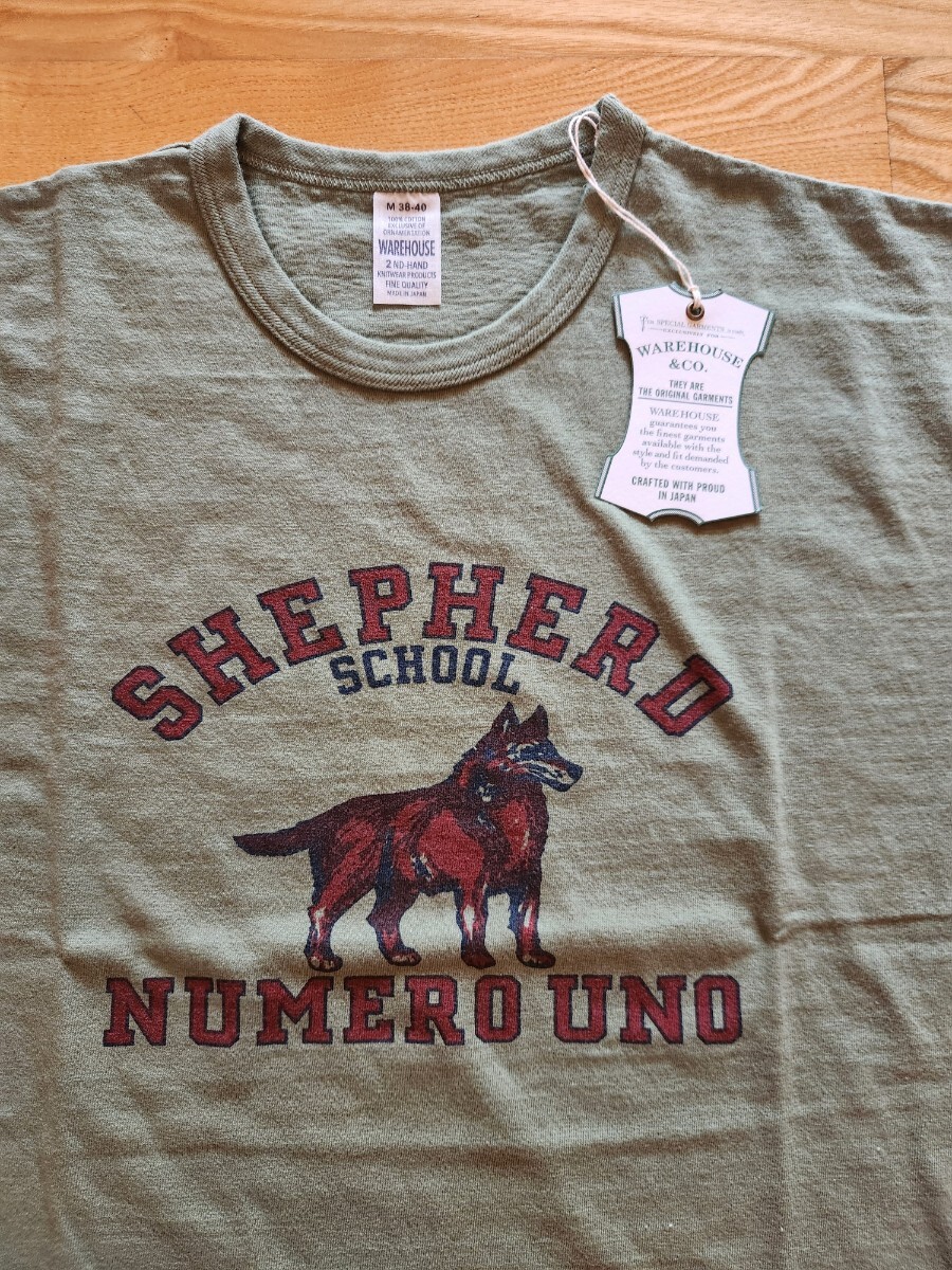 - 新作 即決★WARE HOUSE ウエアハウス4064 2ND-HAND セコハン カラープリント半袖Tシャツ SHEPHERD オオカミ 日本製 パールグリーン L