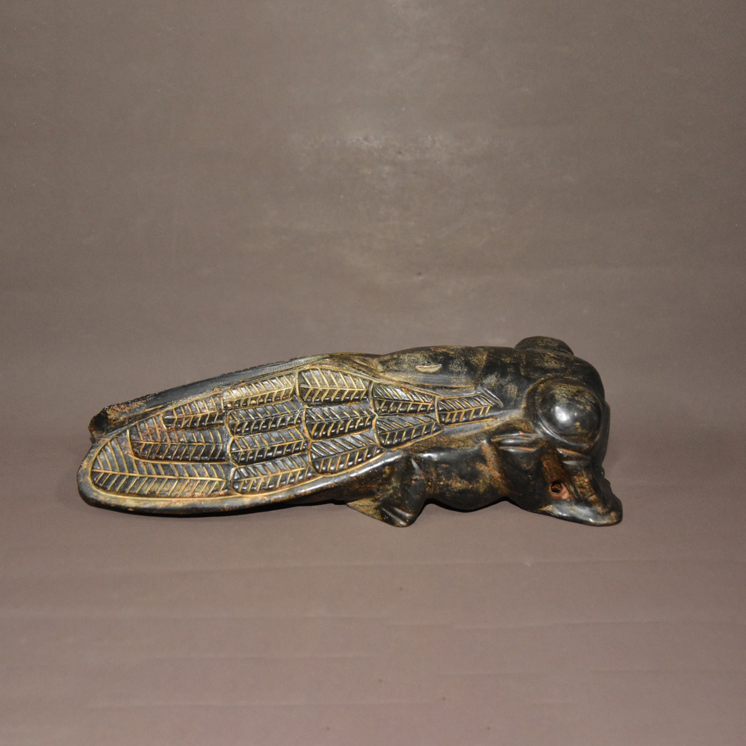 - 8+GV7369「東洋美術」 人間国宝 和田玉 極細工 古置物 中国古美術 【隕石、黄金の蝉】 旧物 珍品 収蔵価値が高い