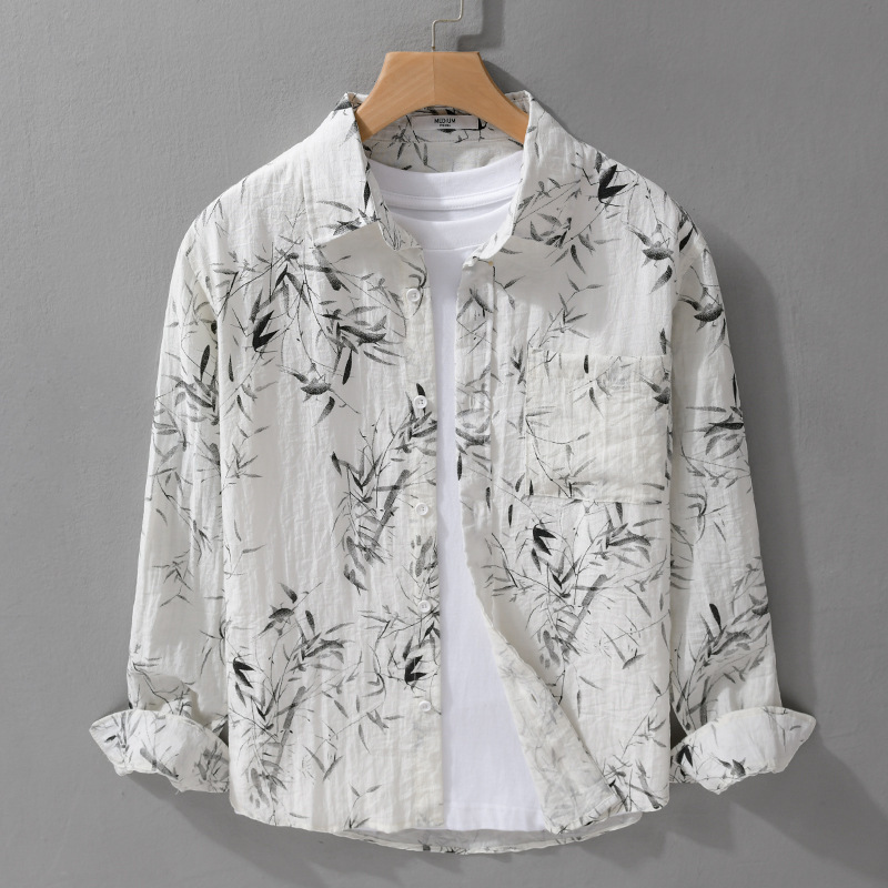 - アロハシャツ 長袖シャツ 海シャツ シャツ 新品★未使用 メンズ 夏シャツ 開襟 トップス【9563】白系 L