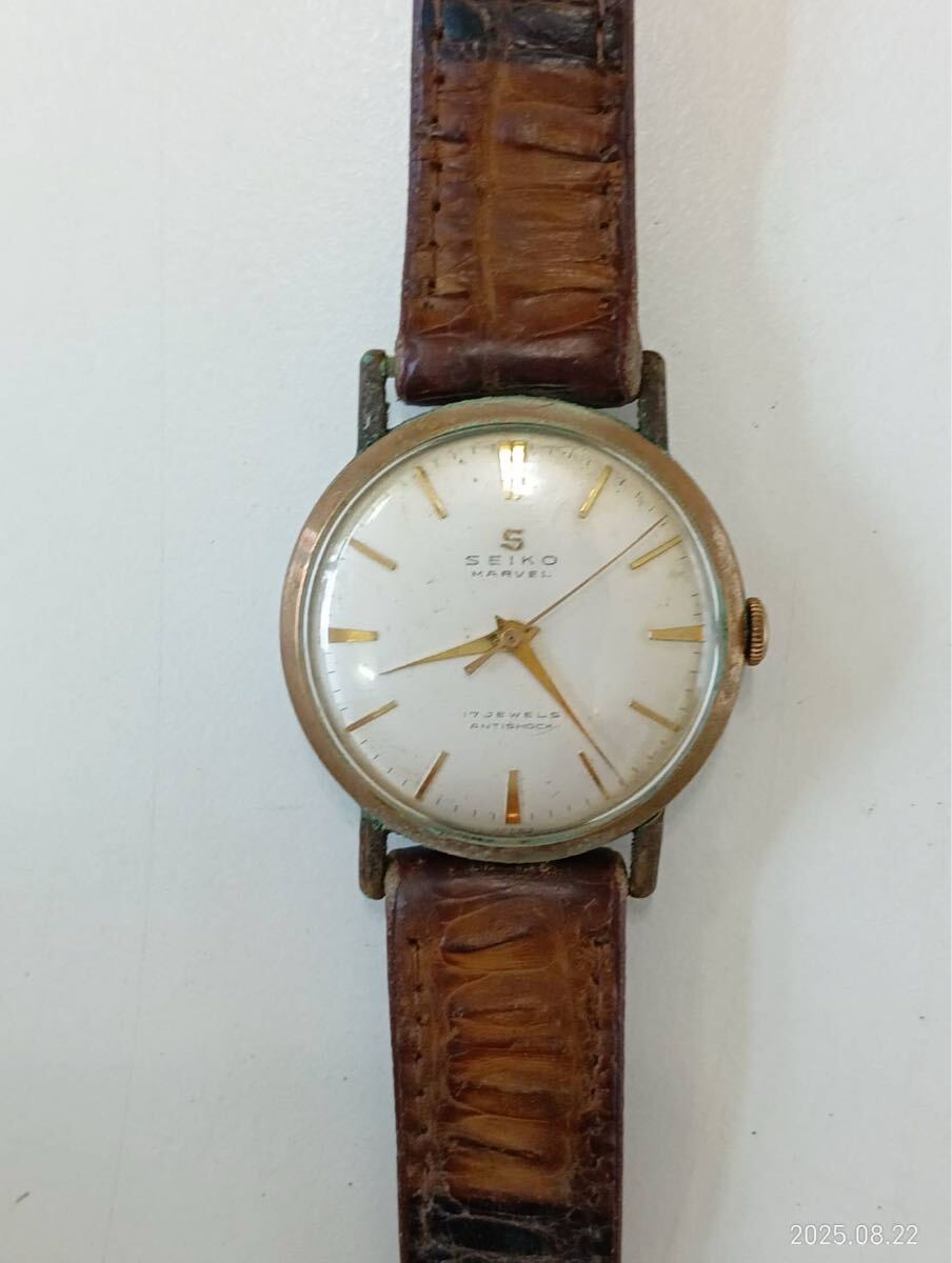 > 【中古品】【動作確認済み】SEIKOセイコー MARVELマーベル 17JEWELS 腕時計 手巻き 14022M 彫り文字Sマーク 14KGF 時計 現状品