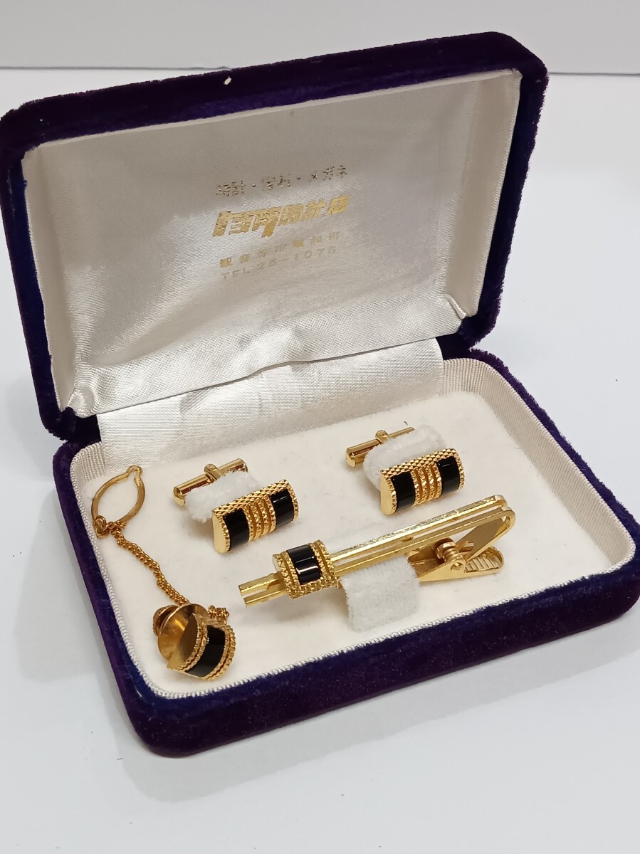- メンズ ネクタイピン カフス セット ブラックストーン カラーストーン タイピン