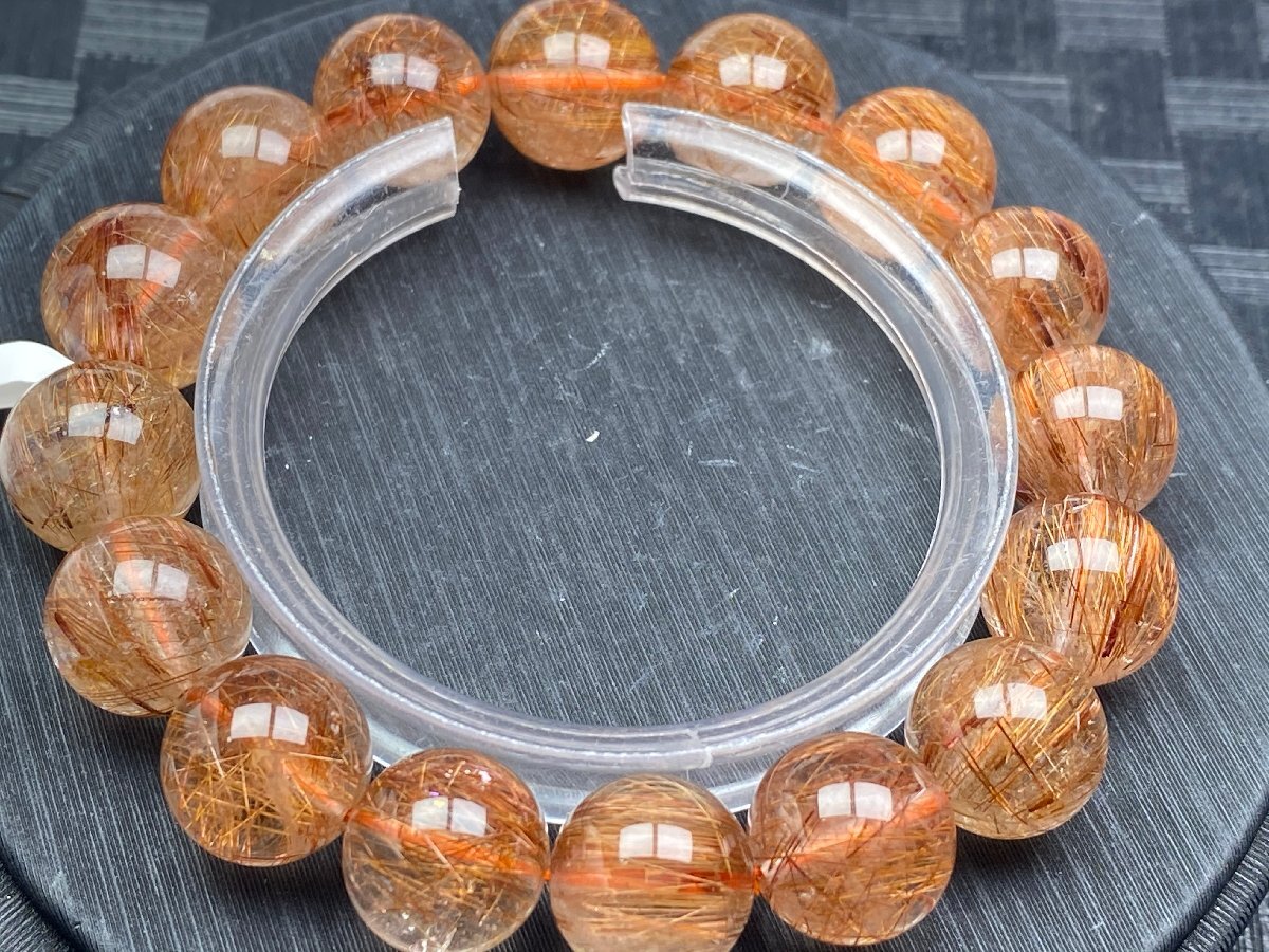 - 即決 0610J547 天然美品★【30A銅髪ルチルクォーツ】★ブレス 13-14mm(新品)