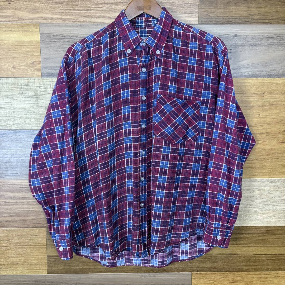 - 好配色 70s World Vagabond プリントネルシャツ ボタンダウン 長袖シャツ サイズ メンズ L 70年代 VINTAGE アメカジ 古着 r25082110