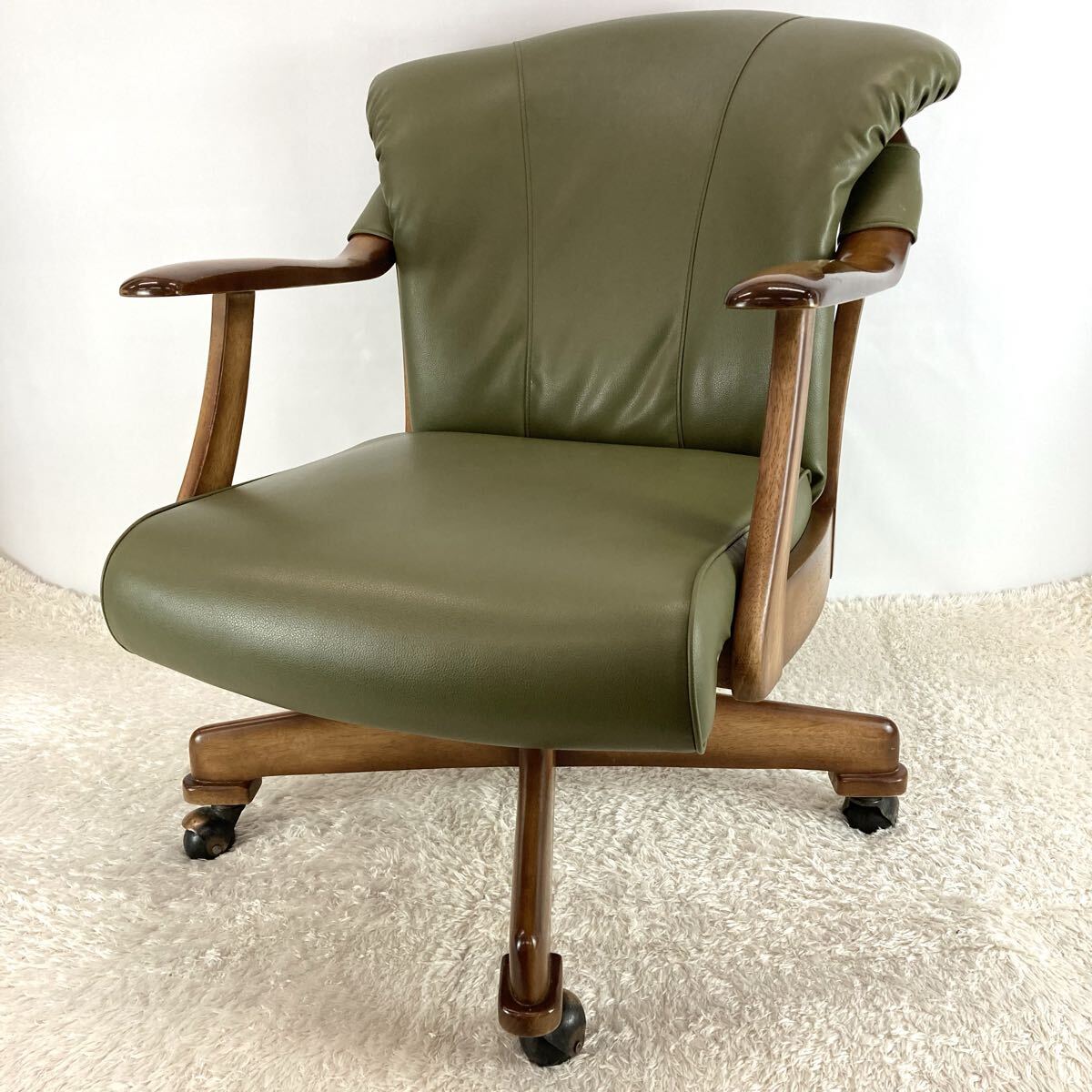 - OTSUKA 大塚家具製造 センチュリー DC-597AD 回転椅子 アームチェア キャスター 木製フレーム 合皮張り グリーン