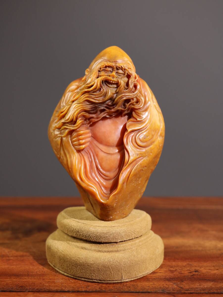 - 『館蔵珍品 寿山石 田黄石 細密彫 達摩祖師印章 印章 印鑒』文房具 書道品 貴重物品 収蔵品 中国古美術 時代物 古董品