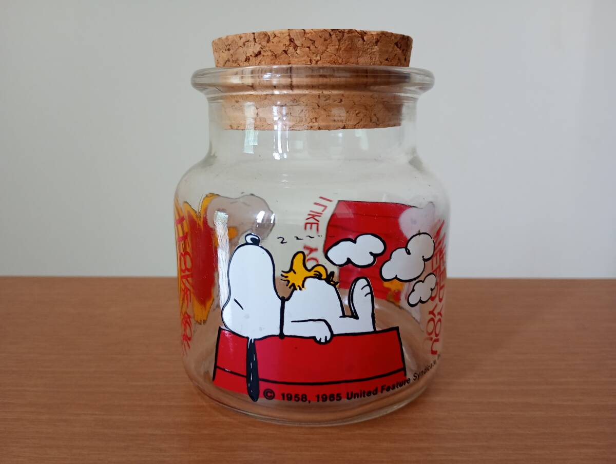 - 昭和レトロ スヌーピー ウッドストック ガラス 瓶 キャンディポット 保存容器