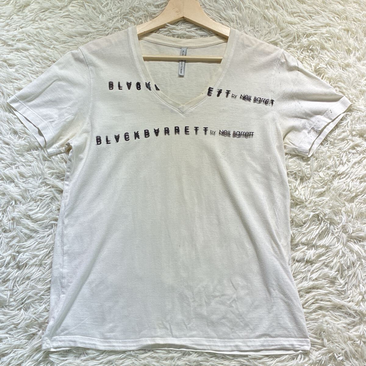 - 美品◎NEIL BARRETT ニールバレット 半袖 Tシャツ ロゴ Vネック 白 ホワイト 3/L コットン 綿 メンズ トップス