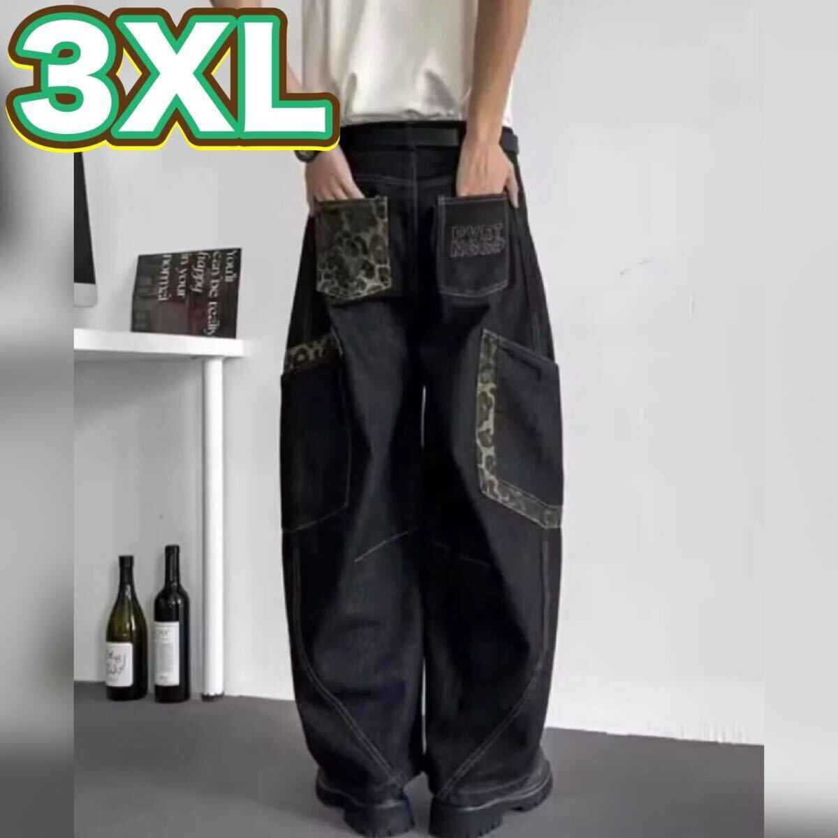 - デニムパンツ ワイドパンツ 3XL ブラック メンズジーンズ サイドポケット ストリートカジュアル オルチャン Y2Kファッション
