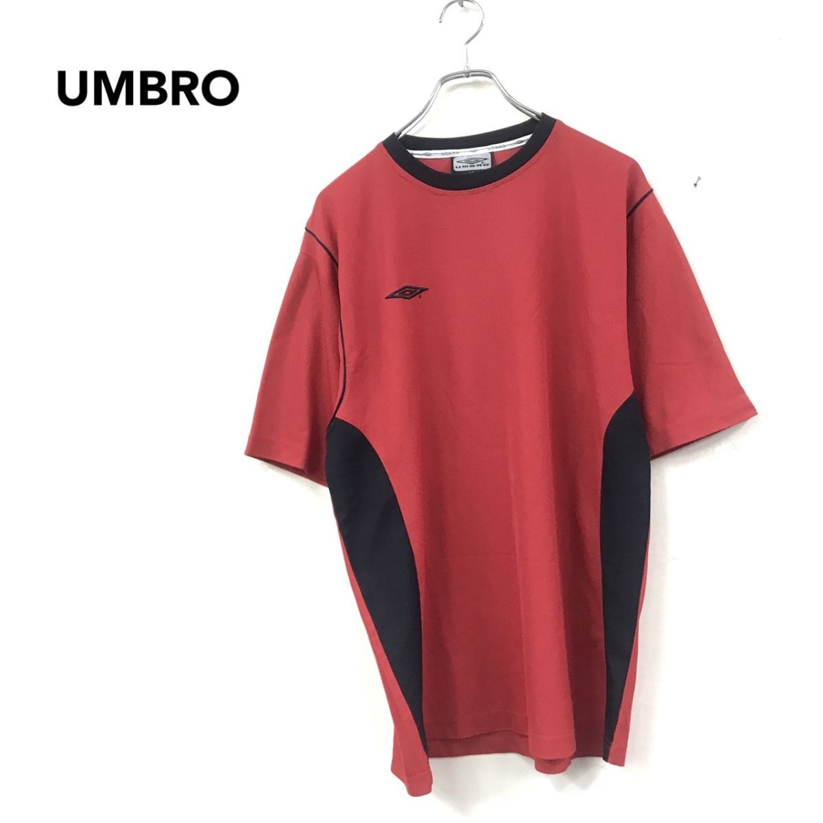 > 2H2300-D◆old◆ UMBRO アンブロ 半袖Tシャツ カットソー ロゴ刺繍 ◆ sizeXL レッド ブラック ポリエステル系