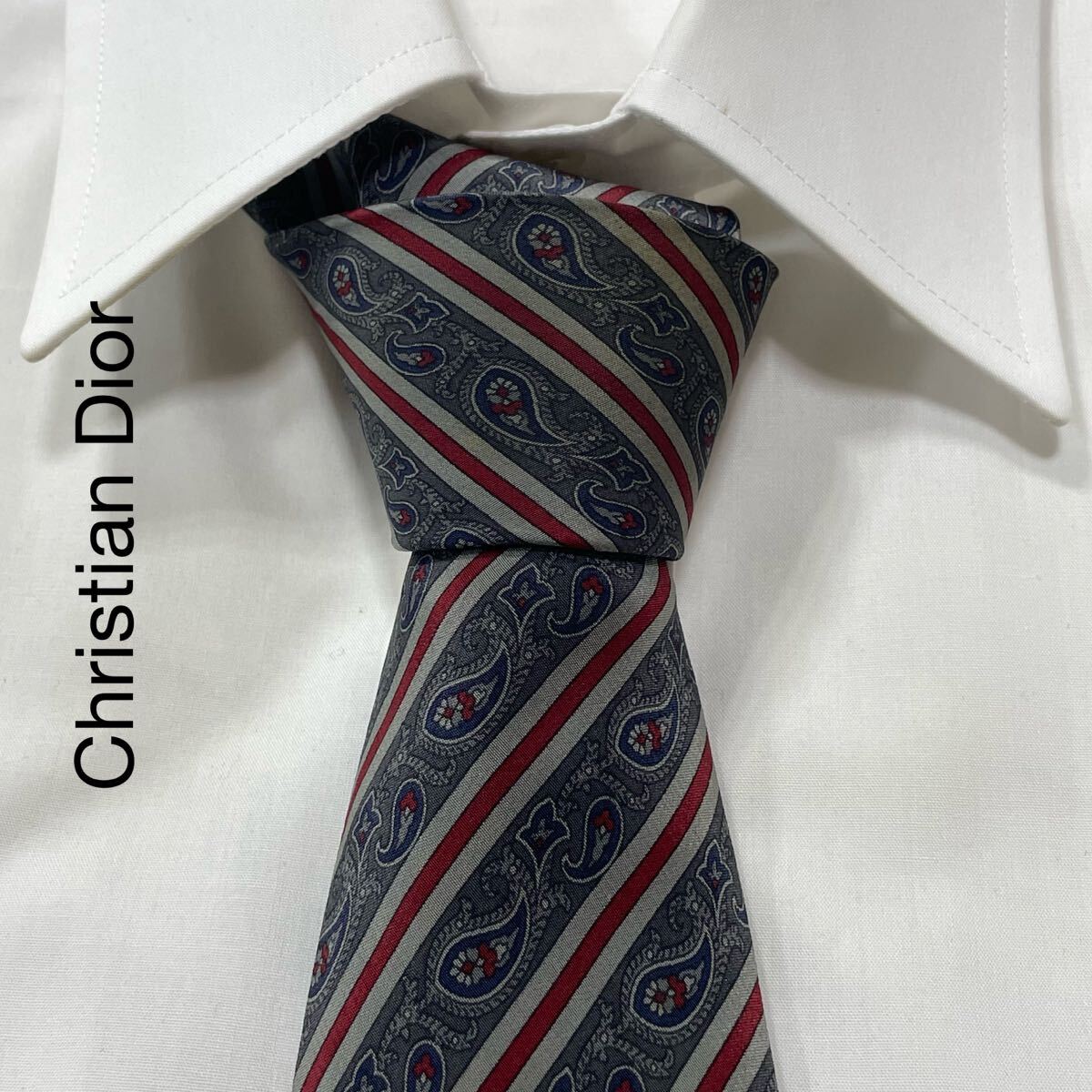 - Christian Dior クリスチャンディオール ペイズリー ストライプ シルク ネクタイ イタリア製 グレー ワイン ネイビー TG2799