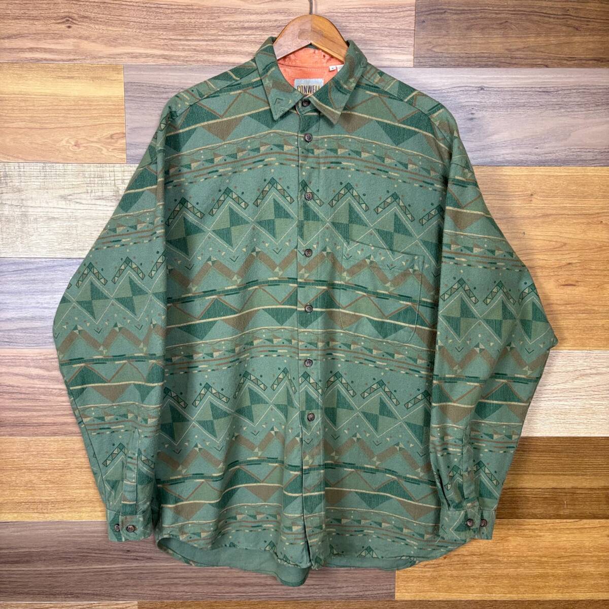 > 80s CONWELL 幾何学柄 長袖シャツ サイズ メンズ L 80年代 VINTAGE ビンテージ ヴィンテージ ストリート アメカジ 古着 r25082122