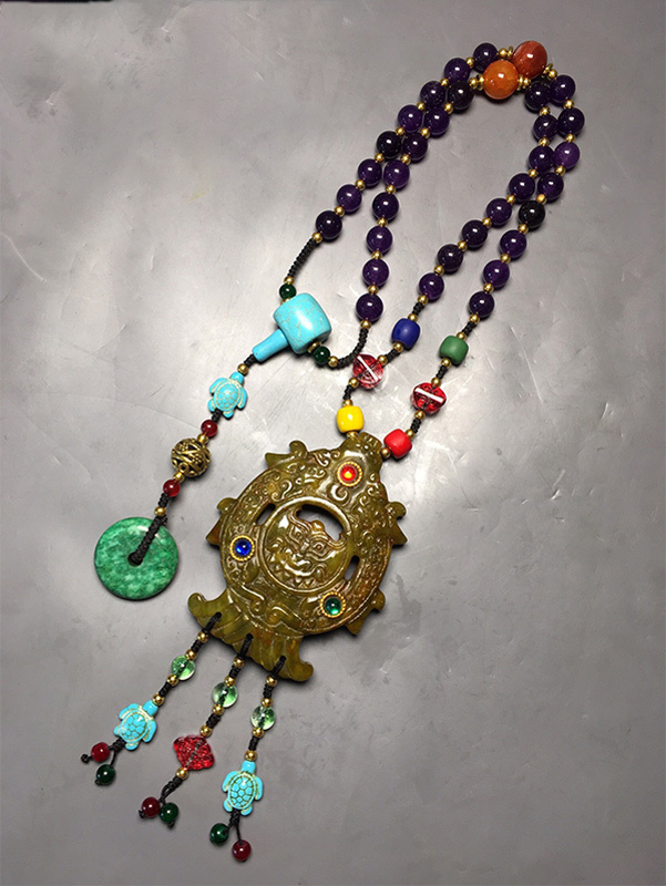 - zz8|7694 和田玉 人間国宝【 高古玉は百宝玉の首飾りで飾ります】 中国古玩 中国骨董 伝世珍品 風水秘蔵 伝世家珍 收藏品 置物