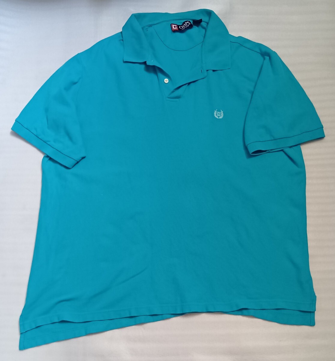 > ☆CHAPS サイズXXL ポロ半袖シャツ2つボタン COTTONスリット有スポーツ刺繍マリン水色ブルー ファッション エレガンス ブランド チャップス