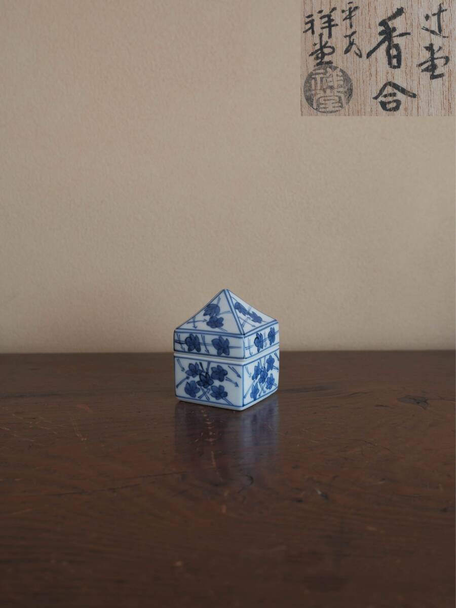 - 【青枠】手塚祥堂 辻堂 香合 香道具 染付 茶道具 箱付 古道具 時代物 美術品Q1877
