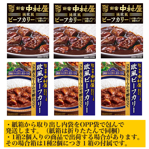 - ■新宿中村屋 純欧風ビーフカリー(黒箱)・欧風ビーフカリー 2種6箱■